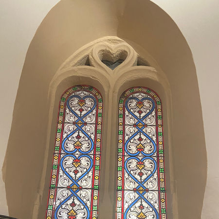 C’est une très belle église, avec ses vitraux aux formes géométriques, sa façade de pierres, son clocher octogonal original.