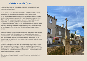 Les croix de peste sont des monuments chargés d'histoire, érigés en Europe du Moyen Âge jusqu'au XVIIIe siècle pour implorer la divine protection face aux épidémies de peste.Face à une maladie incomprise et mortelle, les populations se tournaient vers la religion.